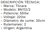 La Tilcara BN 112-2 es una bordeadora eléctrica de alta calidad, diseñada para mantener tu jardín impecable y con un acabado profesional. Con su potente motor de 550 W, esta máquina te permitirá realizar trabajos de desmalezado y bordeado de césped de manera rápida y eficiente. Su sistema de corte con tanza de 1.5 mm de diámetro máximo garantiza un corte preciso y uniforme en todo momento. Además, al funcionar con corriente eléctrica, no tendrás que preocuparte por la carga de combustible ni las emisiones contaminantes. La Tilcara BN 112-2 cuenta con un protector de seguridad y una carcasa de protección, brindándote mayor seguridad y confianza al momento de trabajar en tu jardín. No esperes más para disfrutar de un jardín perfecto y bien cuidado con la ayuda de esta práctica y eficiente bordeadora eléctrica.